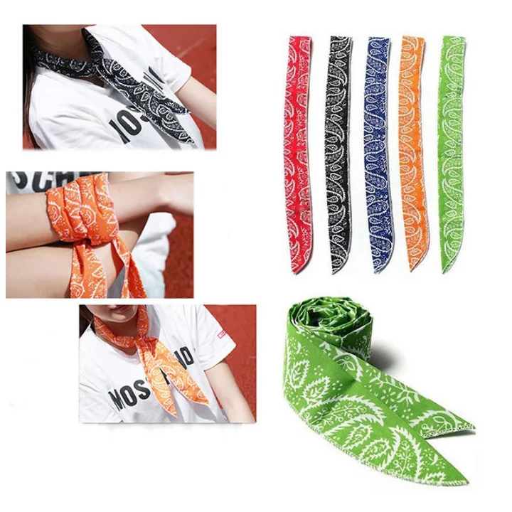 100% новый и высококачественный Материал: хлопок и нетоксичный охлаждающий материал Цвет: черный/оранжевый/зеленый/темно-синий/красный Размеры: 100x5 см Количество: купальное полотенце, 1 шт Особенности: