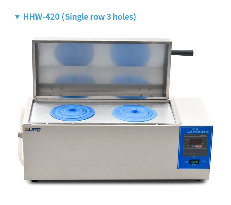 1. Мощный: подходит для дистилляции, сушки, концентрации, постоянного нагрева температуры и пропитки химических веществ или биологических продуктов, биохимических экспериментов, культуры постоянной температуры и дезинфекции кипящего оборудования 2. Высокая точность контроля температуры: он принимает импортированный одно-чип контроль температуры, контроль температуры, точность определения его местонахождения составляет 0,1 °C, контроль температуры является достоверным, и долгий срок службы. 3,304 вкладыш из нержавеющей стали: Лучшая коррозионная стойкость и длительный срок службы 4. Сплит-тип крышки отверстия: он может регулировать размер отверстия, и отверстие оснащено крышкой пластины, которая может быть использована в качестве водяной ванны. 5. Панель цифрового дисплея: эта машина имеет функцию цифрового дисплея, которая может отображать заданную температуру и температуру в реальном времени, что упрощает эксперимент.
