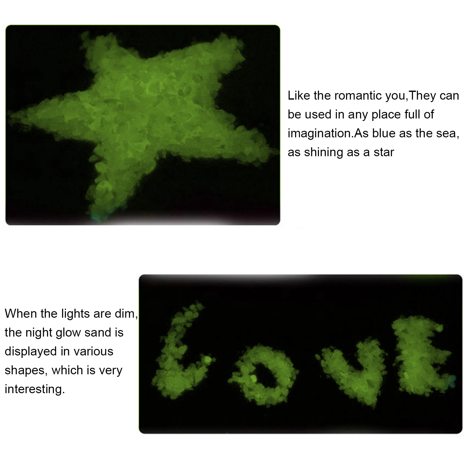 После того, как светильник на солнце находится всего в течение нескольких минут, этот светящийся песок может издавать блестящее светящееся свечение в течение нескольких часов