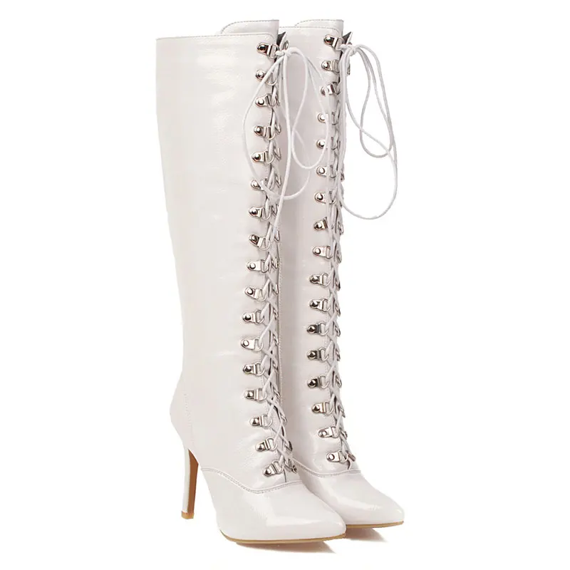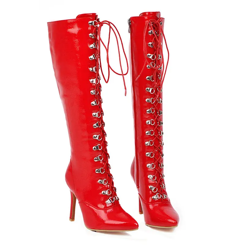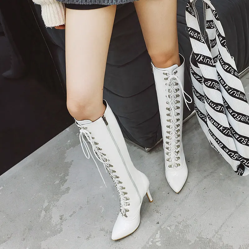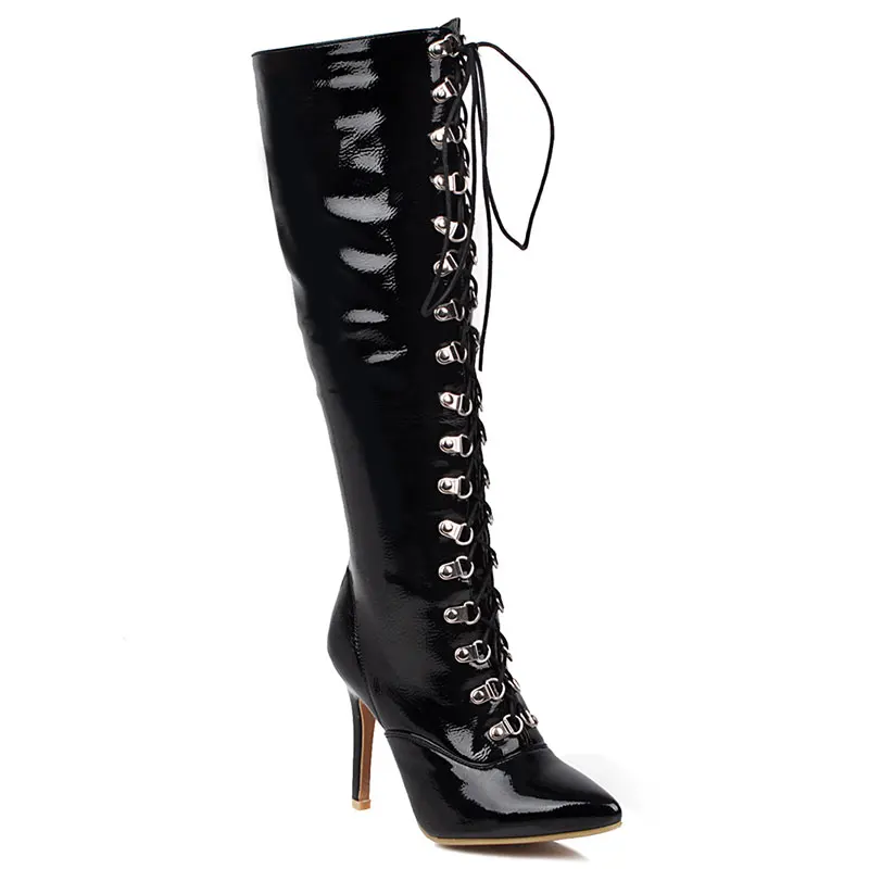Lasyarrow/2020; Лидер продаж; Пикантные женские сапоги до колена на тонком высоком каблуке с острым носком; Сезон осень-зима; Высокие сапоги на шнуровке