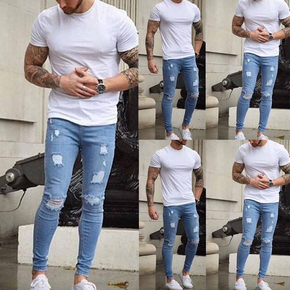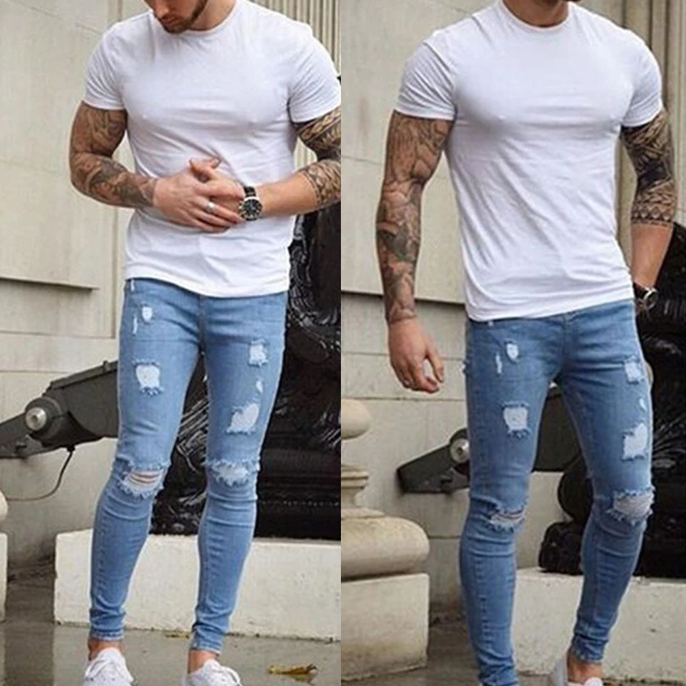 Стиль: модные мужские байкерские рваные обтягивающие джинсы