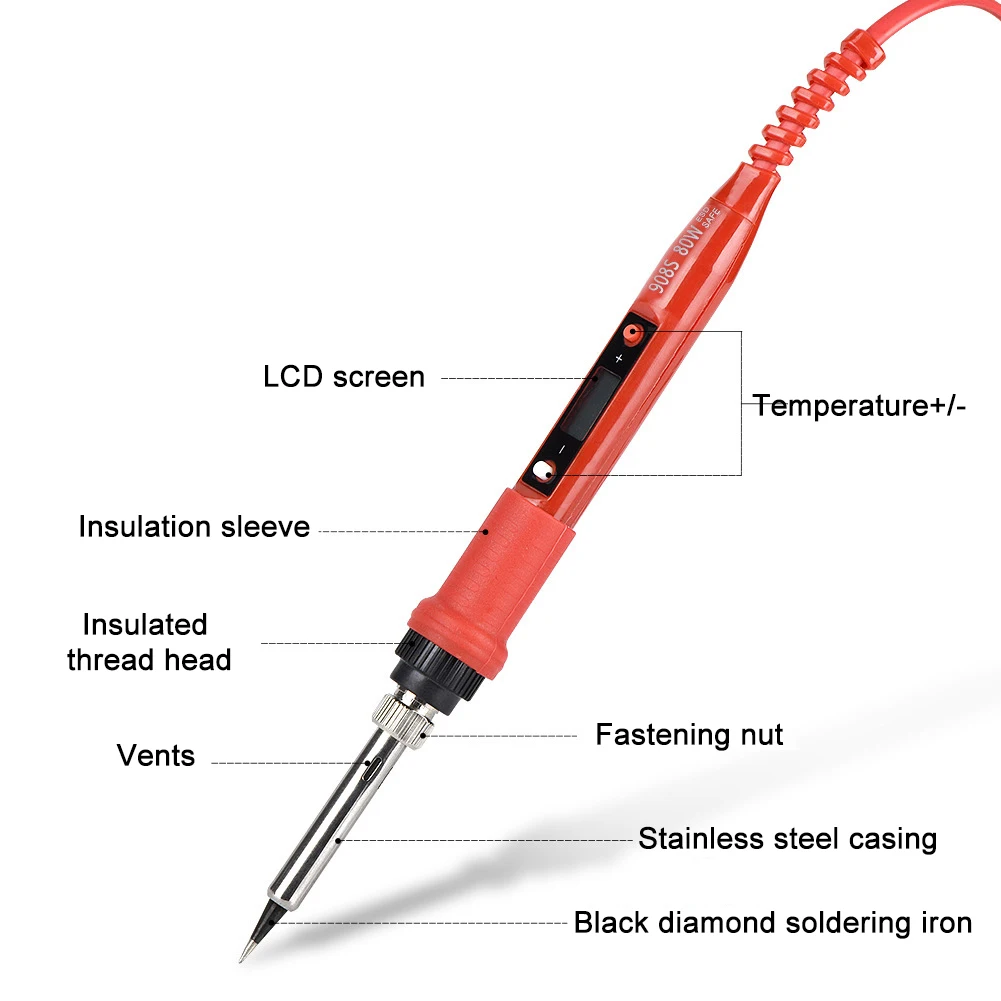 80W 220V Temperature Adjustable LCD Screen Electric Soldering Iron Welding Tool