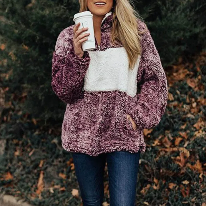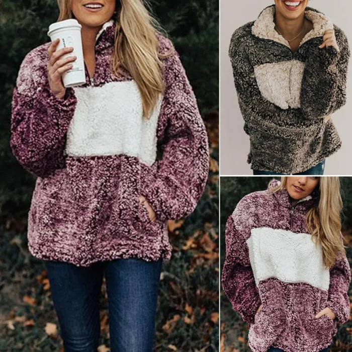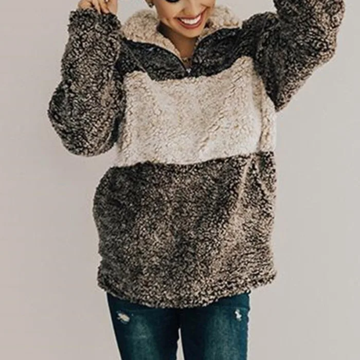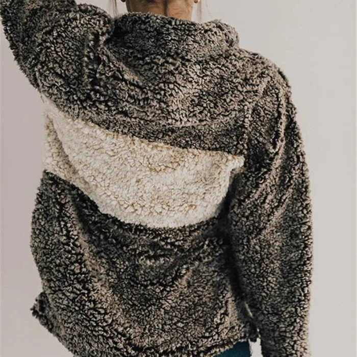 Женское плюшевое пальто сплайсинга пальто с лацканами с длинным рукавом теплое пальто Топы Осень Зима JS25