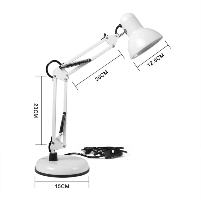 1.Гибкий и стабильный:Ручки лампы соединены в трех различных положениях: на основании, половина пути вверх по дужкам и головке лампы. Он позволяет легко регулировать светильник практически в любом положении. Светильник можно отрегулировать на общую высоту 1,7 футов. Весовое основание достаточно, чтобы держать держатель лампы стабильным.