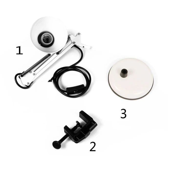 5.Что вы получаете:Он оснащен лампой, настольным основанием, c-зажимом.