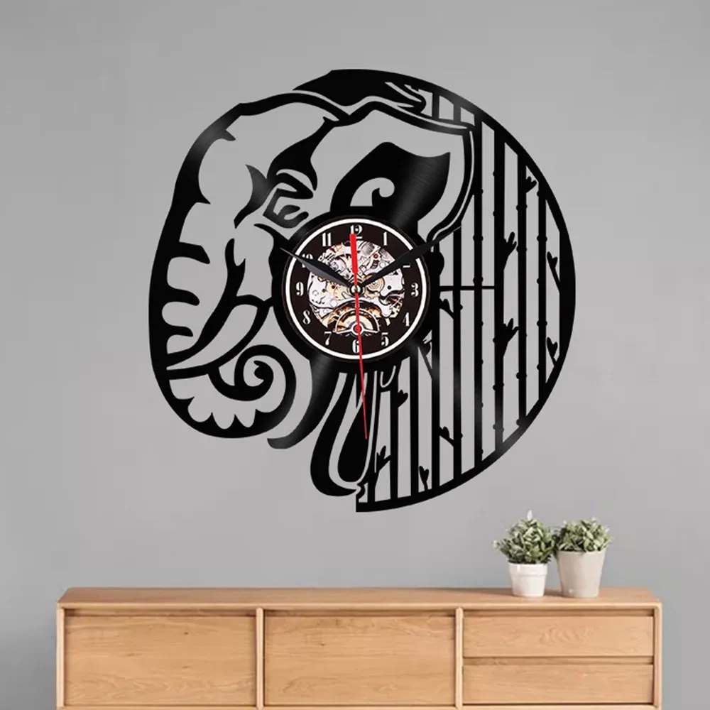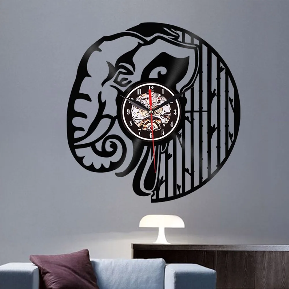 3D Ретро Настенные часы силуэт слона художественная декоративная стена часы дикие животные виниловая запись настенные часы Украшение стен в детской комнате