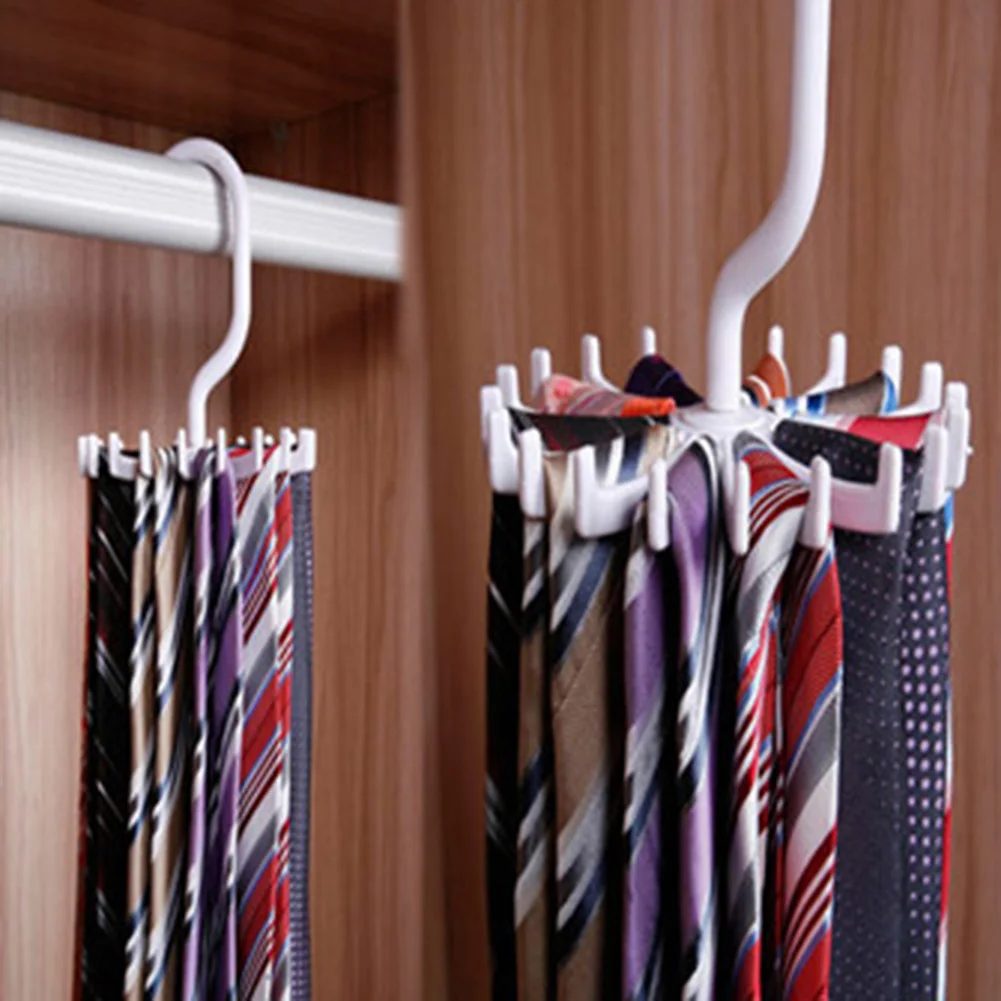 1 шт., 20 крючков, вращающийся держатель для галстука, регулируемый пояс, вешалка для шарфа, Органайзер