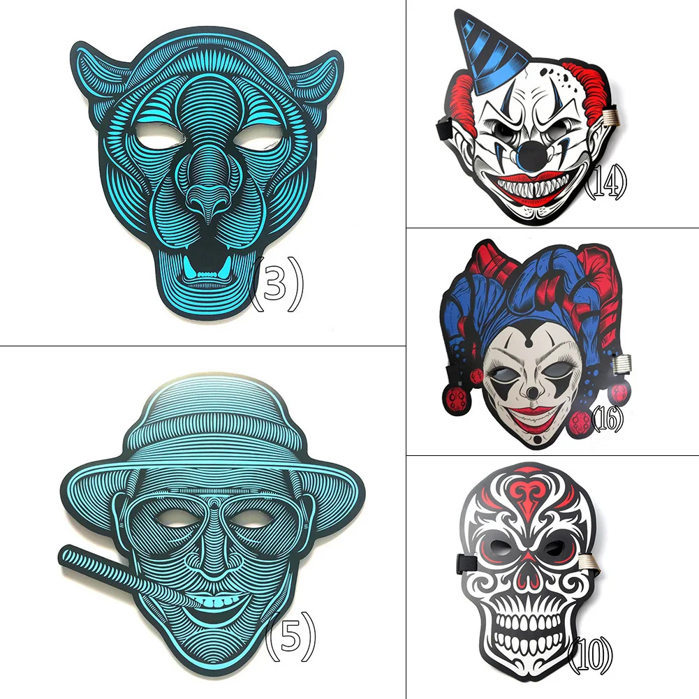 Новое поступление Хэллоуин маска светодиодный элемент с холодным светом EL забавная маска вечерние фестиваль Косплей Хэллоуин светящаяся полная маска для лица Звук Активированный