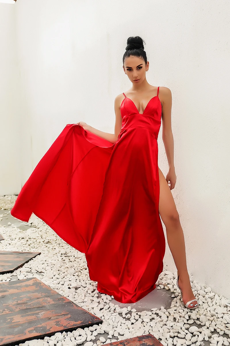 This is an elegant classic color fabric with fashion design dress . A wonderful loose dress with special spit.