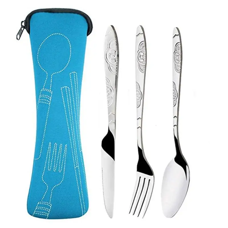 3 шт. набор столовых приборов из нержавеющей стали в западном стиле, нож для стейка, вилка, ложка, портативная столовая посуда, наборы посуды с тканевым мешком