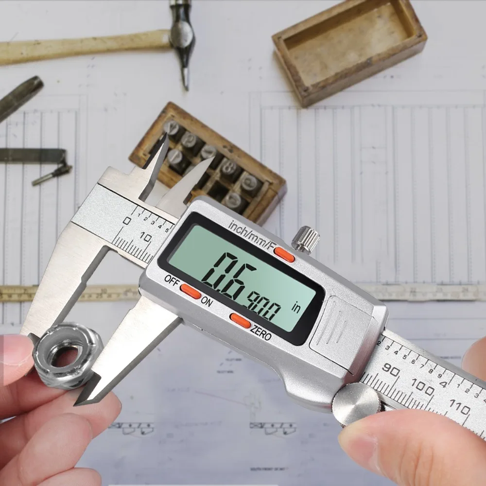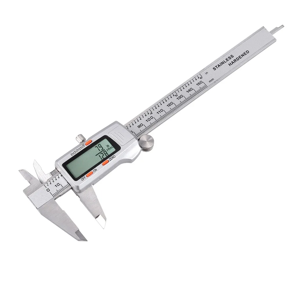 Обзор:ЖК цифровой Электронный штангенциркуль манометр микрометрический инструмент имеет дюймы/Метрические/Фракционные преобразования. Изготовлен из закаленной нержавеющей стали. Внутренние, внешние и высота размеры могут быть легко и точно измерены. Линейная емкостная измерительная система. С простым считыванием ЖК-дисплея. Удобная схема преобразования сзади. Идеальный инструмент для широкого спектра промышленных и автомобильных применений.Характеристики штангенциркуля:Три режима измерения: высокое качество низкая цена из нержавеющей стали цифровой суппорт с дюймами/Метрические/Фракционные преобразованияТочность/Точность: Диапазон измерения: 0 - 6 "и 0 - 150 мм; Разрешение: 0,0005"/1/128 "/0,01 мм; Точность: 0,001"/0,02 ммНержавеющая сталь: вал из закаленной нержавеющей стали с лезвием для измерения глубины, точные внутренние и наружные измерительные челюсти, Прецизионная отделка, электронные цифровые штангенциркулиУниверсальность: Измерьте внутри, снаружи, глубину и шаг с двумя наборами челюстей и зондаЛегкая видимость чтения: Экстра большой ЖК-экран для легкого и четкого чтения