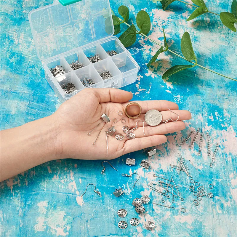 DIY Jewelry Set with Bead Cap/Head Pin/Eye Pin/Earring Hook/Jump Rings/Extender Chain for Jewelry Making DIY Crafts