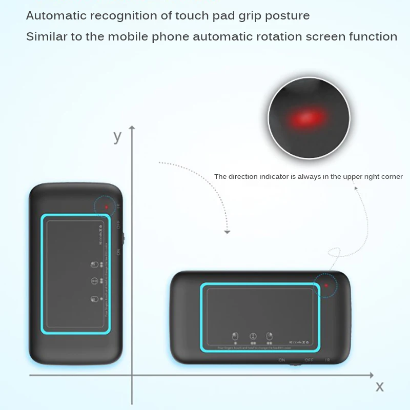 Направление тачпада автоматически распознается, горизонтальная ручка и вертикальная ручка могут работать. Кроме того,Мини беспроводная клавиатура также автоматически разбудит функцию одной стороны вверх.
