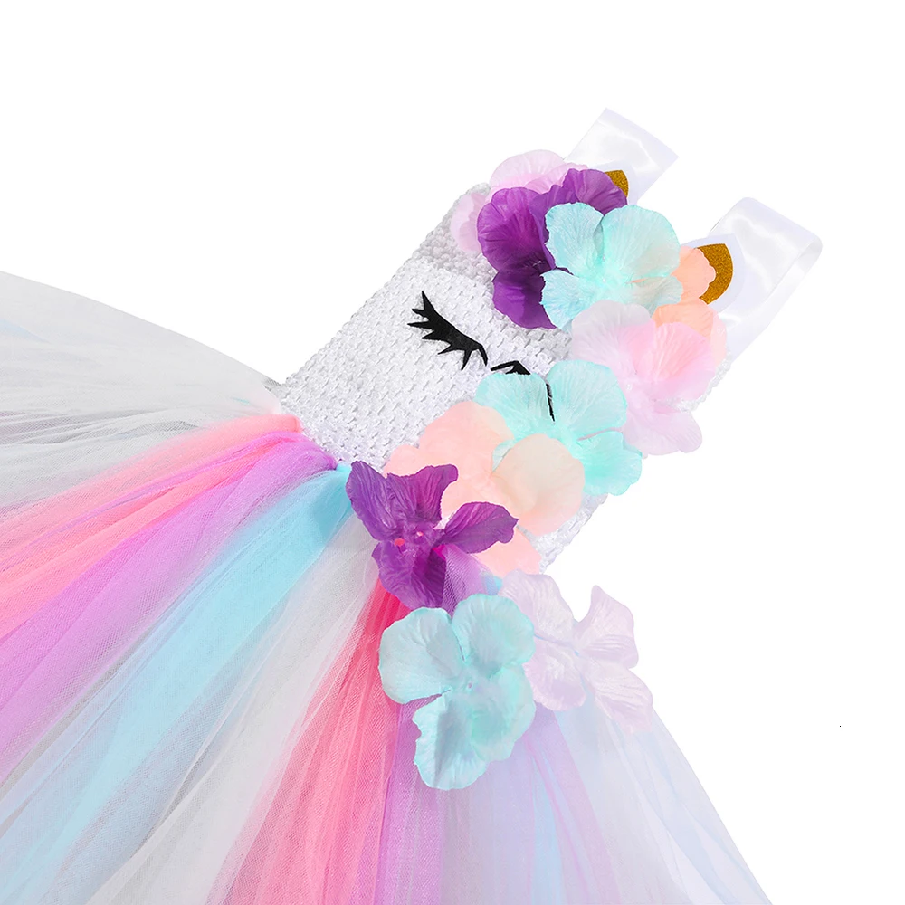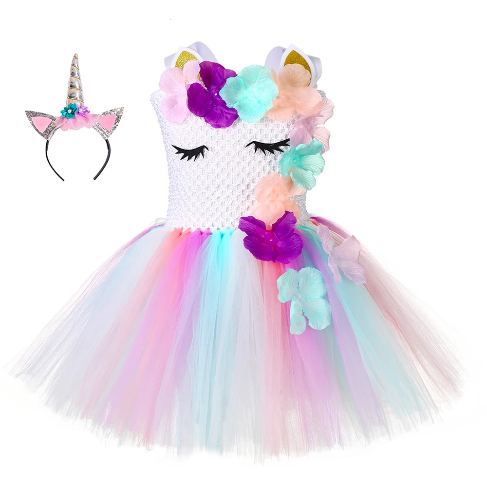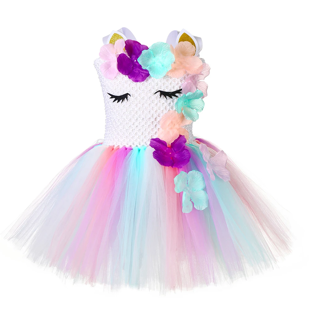 Платье-пачка с цветами и единорогом для девочек; Пастельные Детские вечерние костюмы с единорогом на день рождения для девочек; Детская праздничная одежда на Хэллоуин