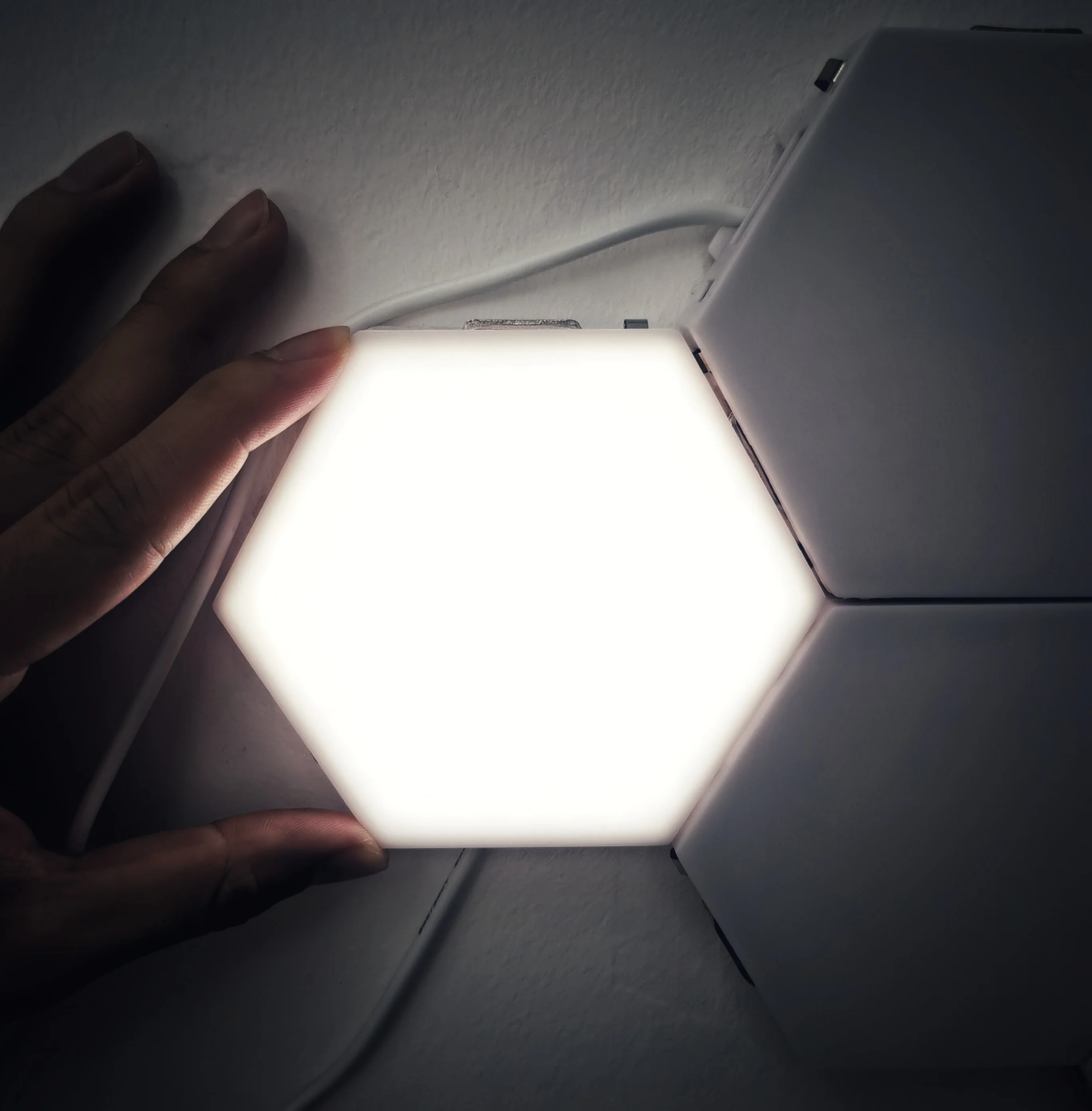 【Модульный сенсорный светильник ing】это модульный сенсорный настенный светильник. Используйте шестигранную дискету для создания любой структуры, чтобы удовлетворить ваши потребности, затем включите и выключите, прикоснувшись к ней.