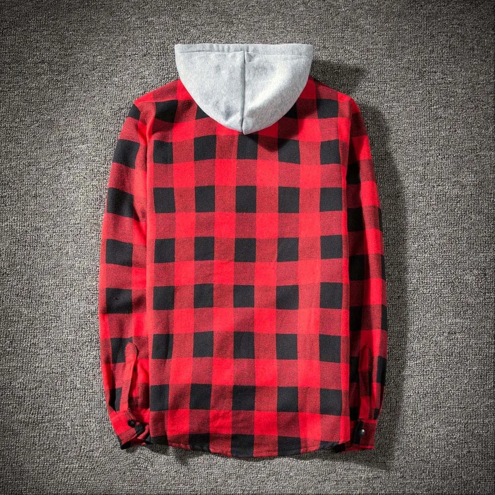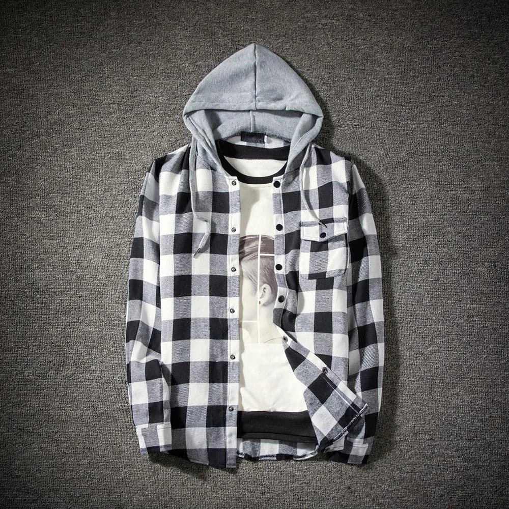 Мужская Осенняя Повседневная клетчатая рубашка с длинным рукавом, пуловер, рубашка с капюшоном, блузка