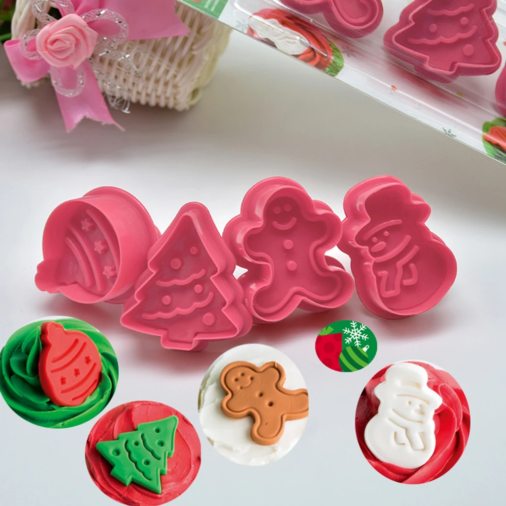 Предназначено для Рождества: набор из 4 предметов, набор для приготовления печенья, Рождественский элемент, обеспечивающий хорошее художественное украшение для печенья, включая рождественскую елку, снеговика, пряники, яйцо