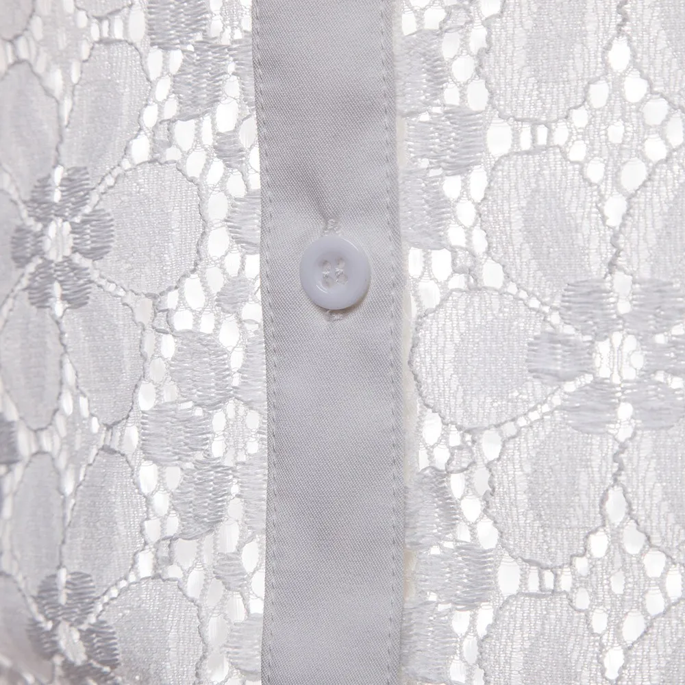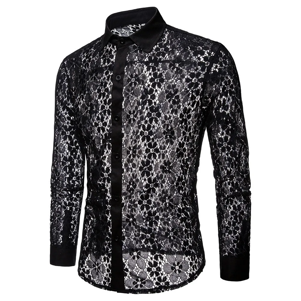 Мужская Осенняя Повседневная кружевная рубашка с длинным рукавом, рубашка с вырезом, топ, блузка