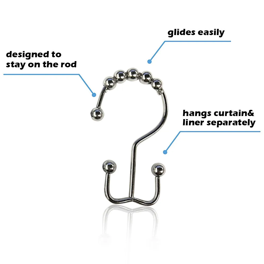 Двойной душ Крючки-двойные крючки для душевой занавески можно повесить как занавеску для душа, так и Подкладка. Кольца для душевой занавески достаточно прочные, чтобы держать тяжелую занавеску И лайнер.