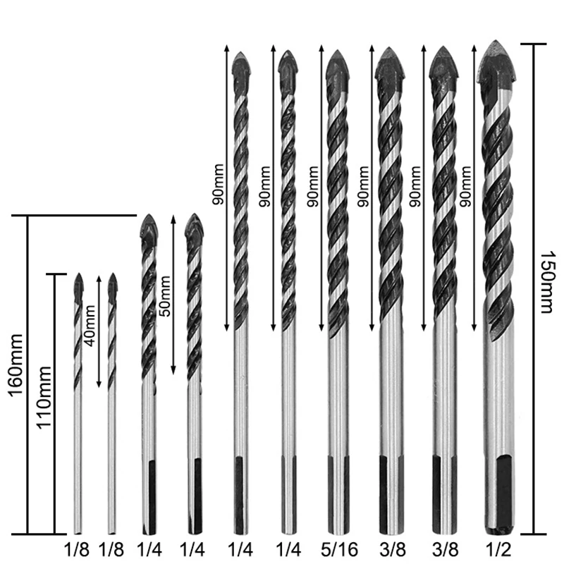 2. Остроконечный дизайн крепкий вольфрамовый карбидный наконечник может легко проникать в различные материалы (плитка, бетон, кирпич, стекло, пластик и дерево и т. д.) и уменьшает пробой
