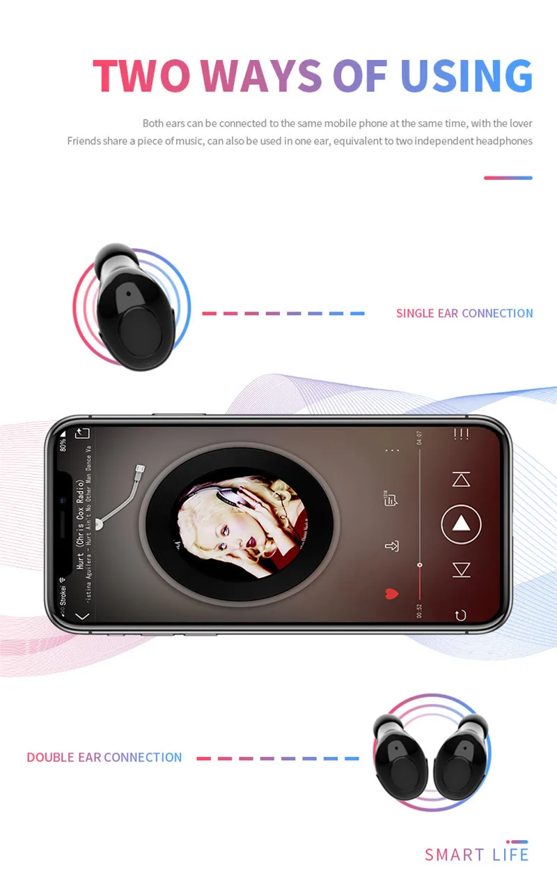 Его можно использовать отдельно, эквивалентно двум раздельным bluetooth-наушникам, или его можно использовать с двумя наушниками, чтобы поделиться музыкой с друзьями.