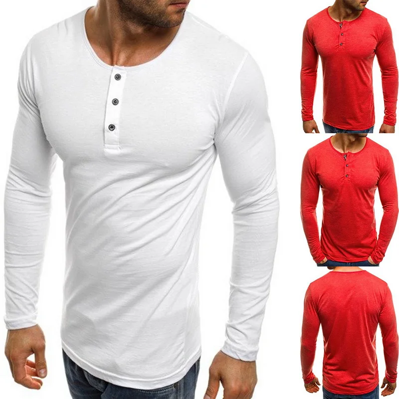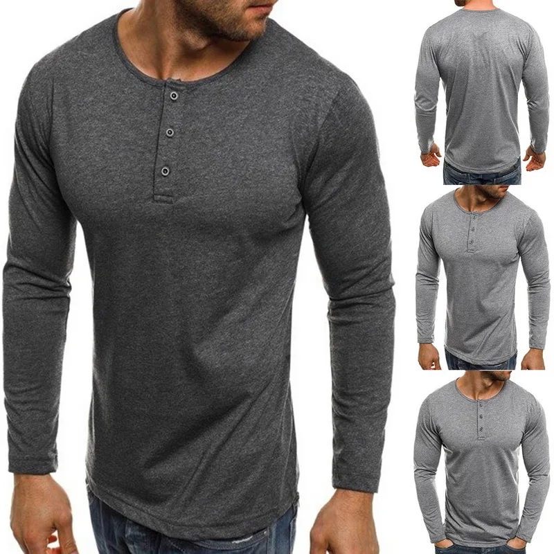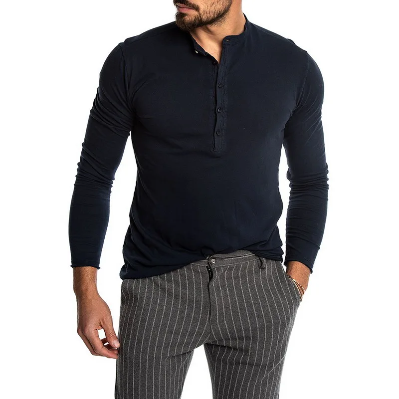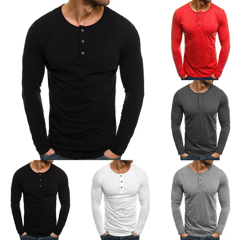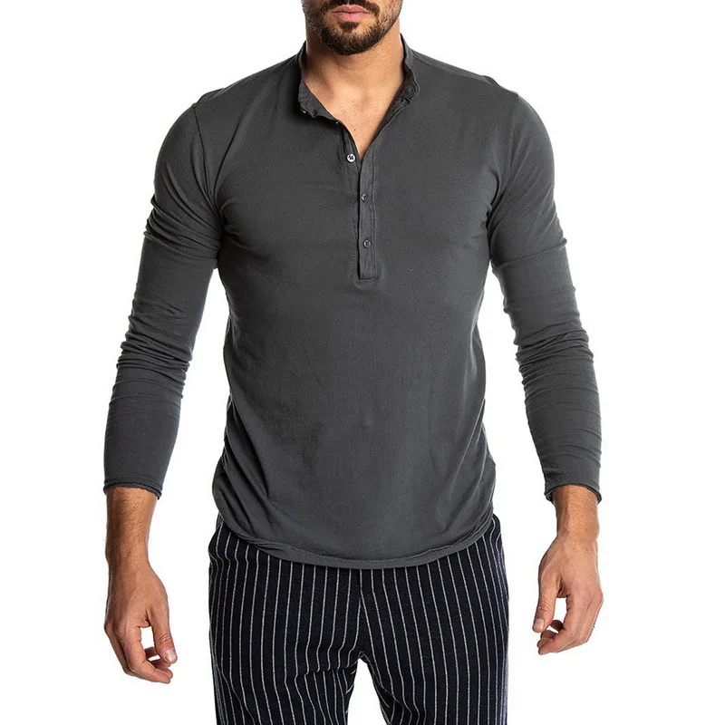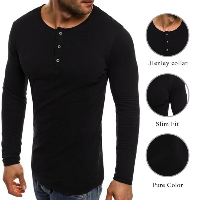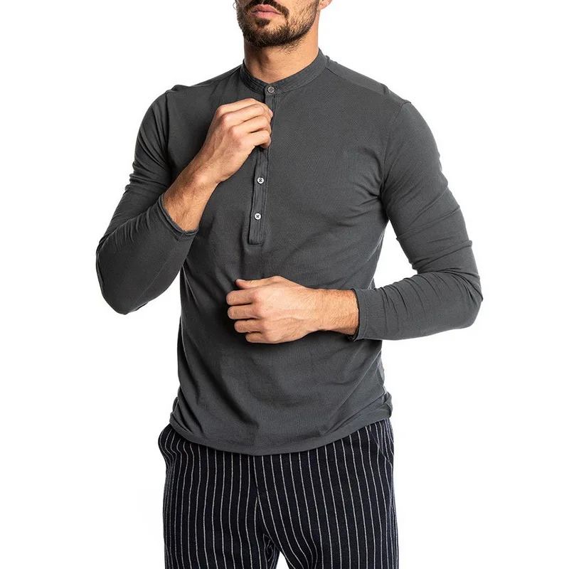 Особенности: сплошной цвет, длинный рукав, воротник Хенли, застежка на пуговицы, тонкая посадка, ультра мягкий, дышащий и прочный