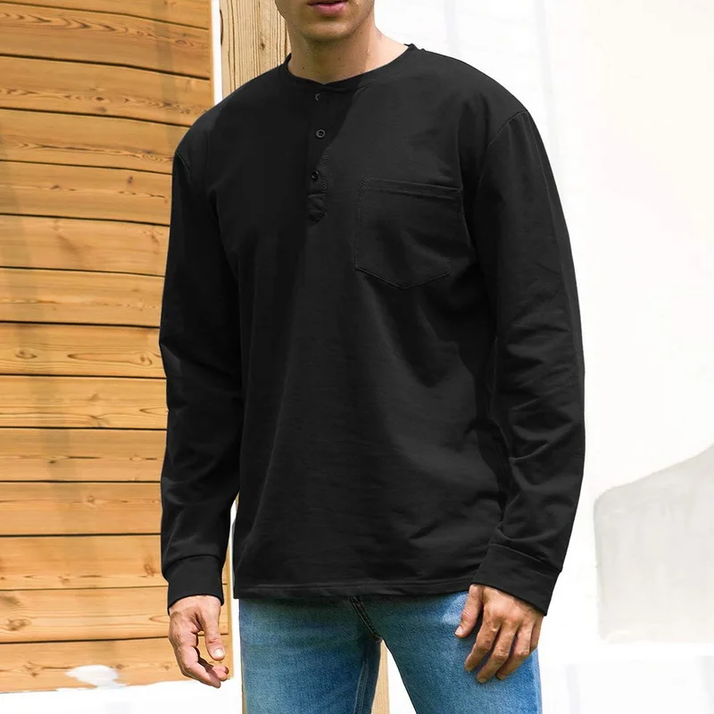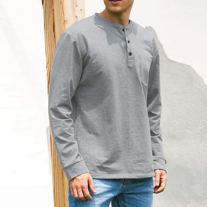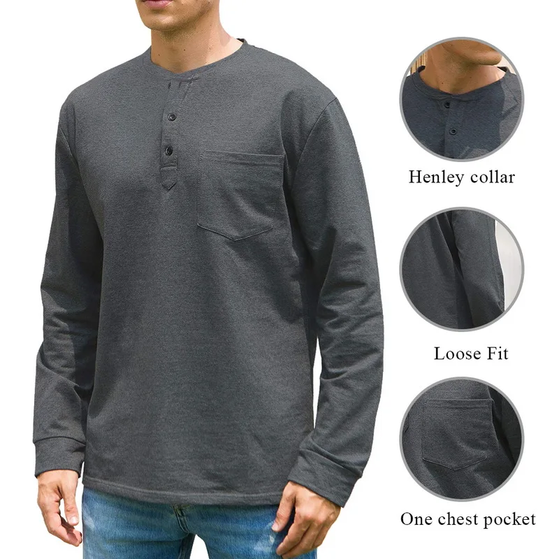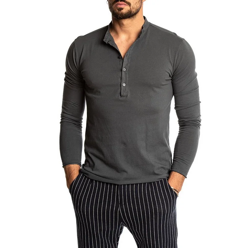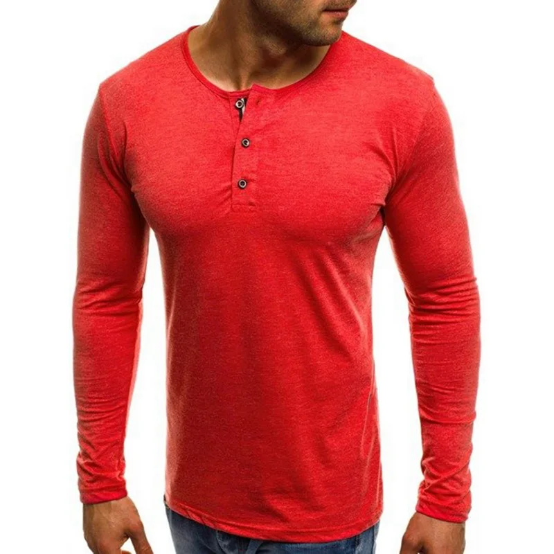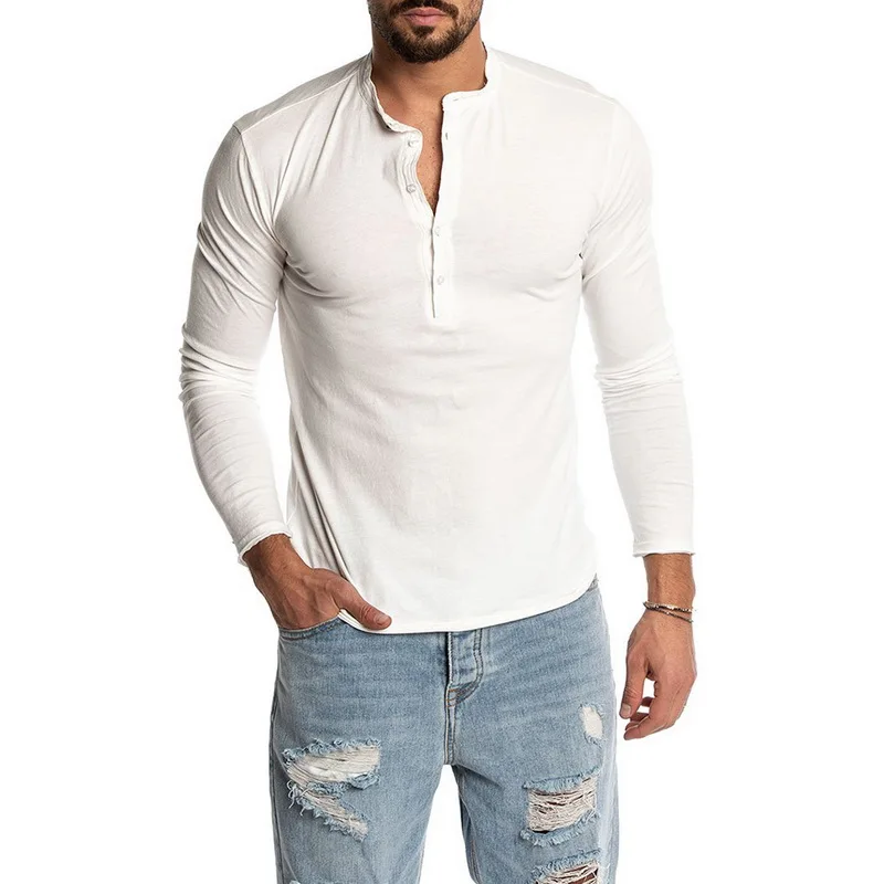 Особенности: сплошной цвет, длинный рукав, воротник Хенли, застежка на пуговицы, тонкая посадка, ультра мягкий, дышащий и прочный