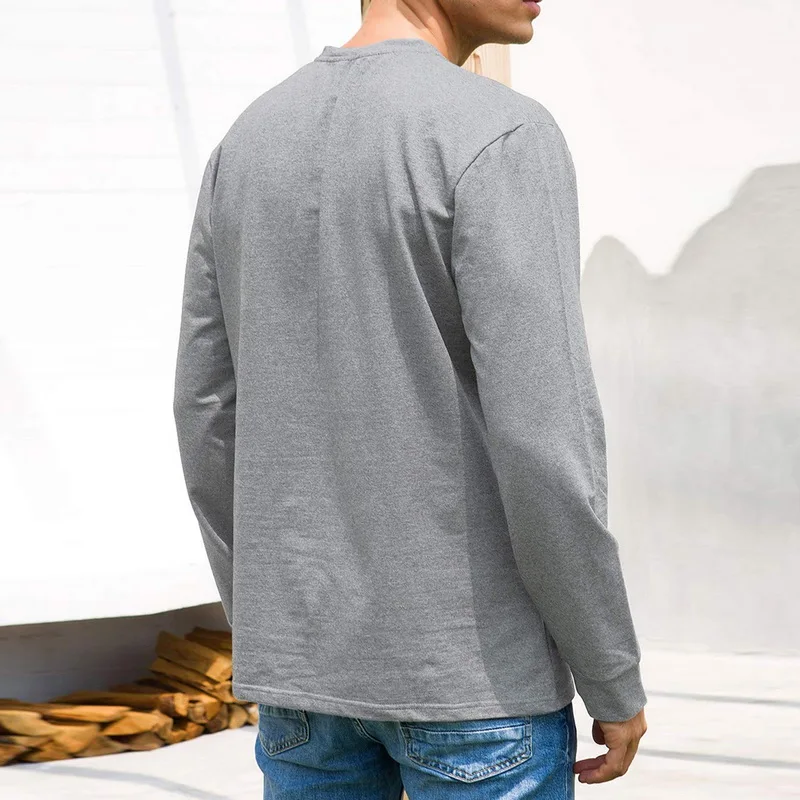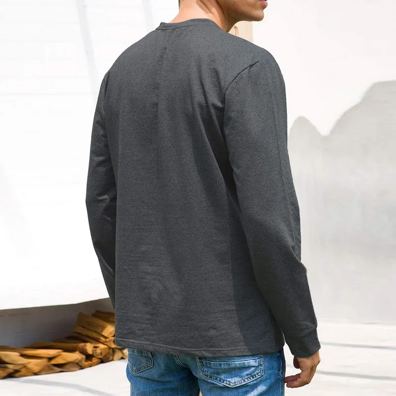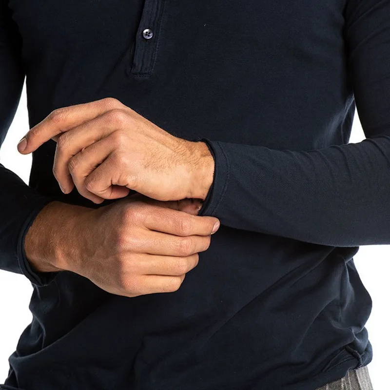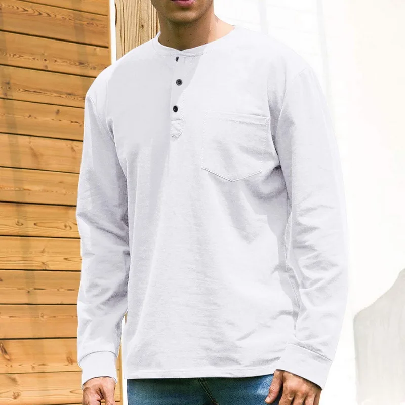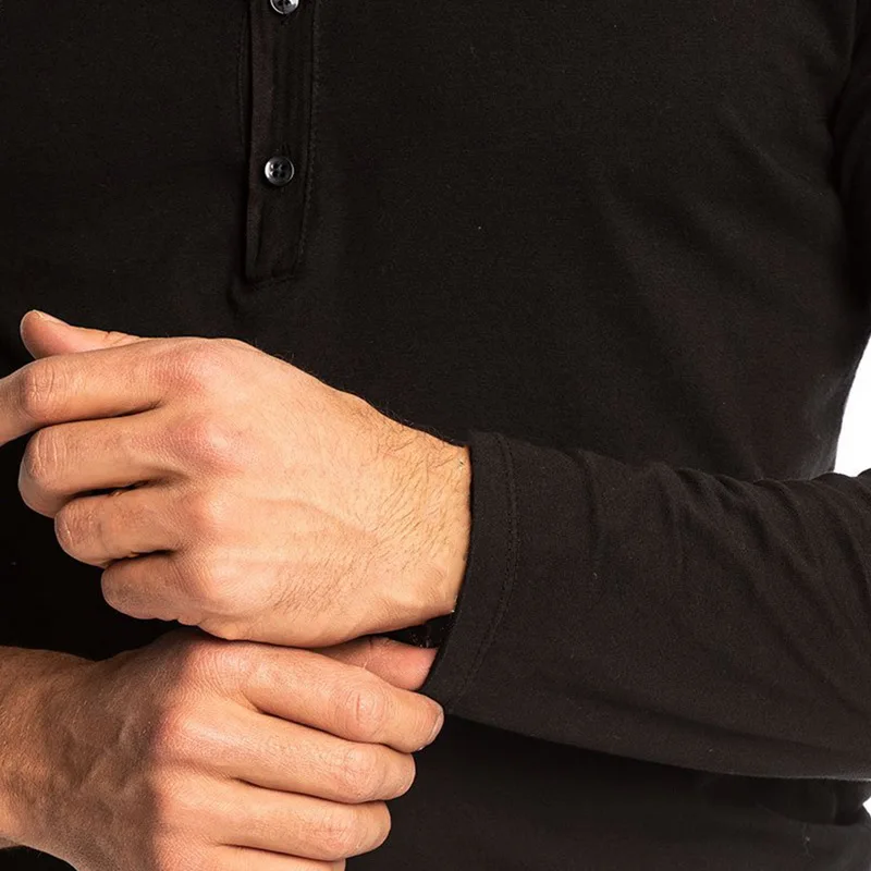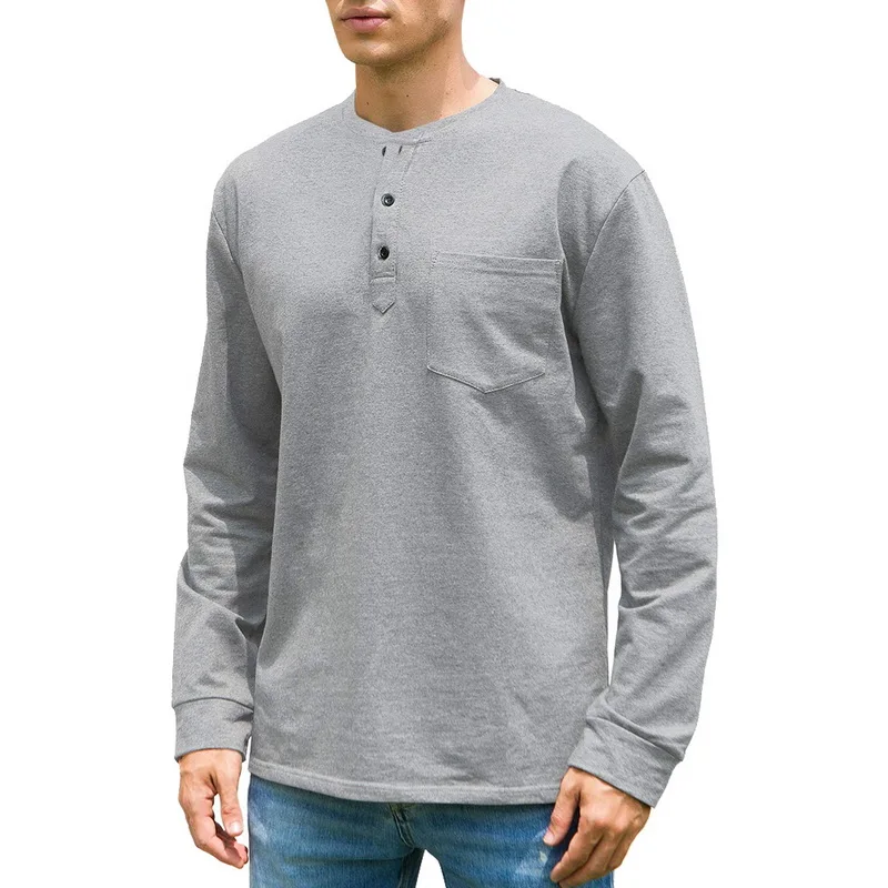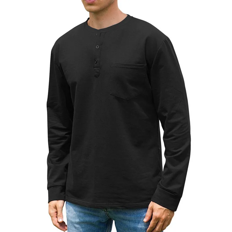 Особенности: сплошной цвет, длинный рукав, воротник Хенли, застежка на пуговицы, тонкая посадка, ультра мягкий, дышащий и прочный