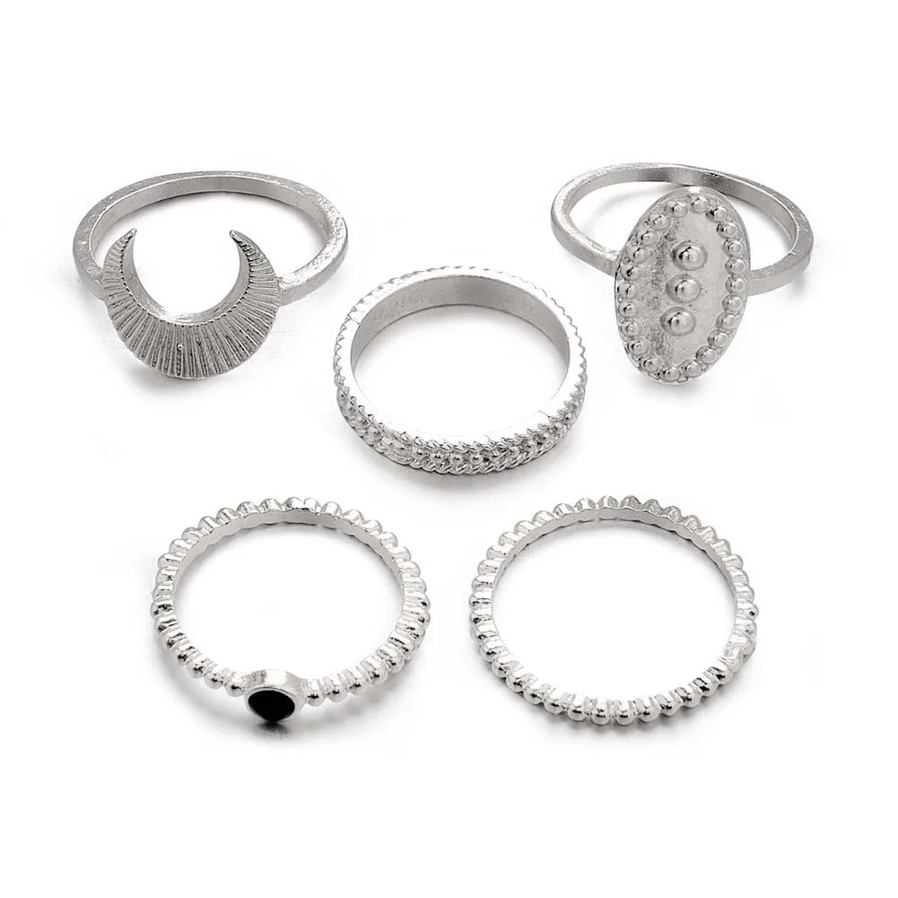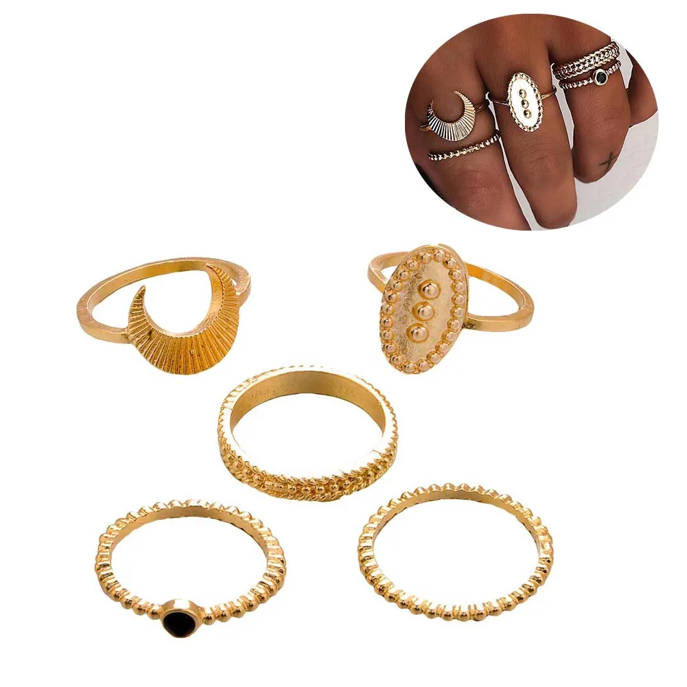 5 шт./компл. богемное женское кольцо на палец с овальной резной формой ing Moon Boho ювелирное изделие подарок на день рождения женские аксессуары