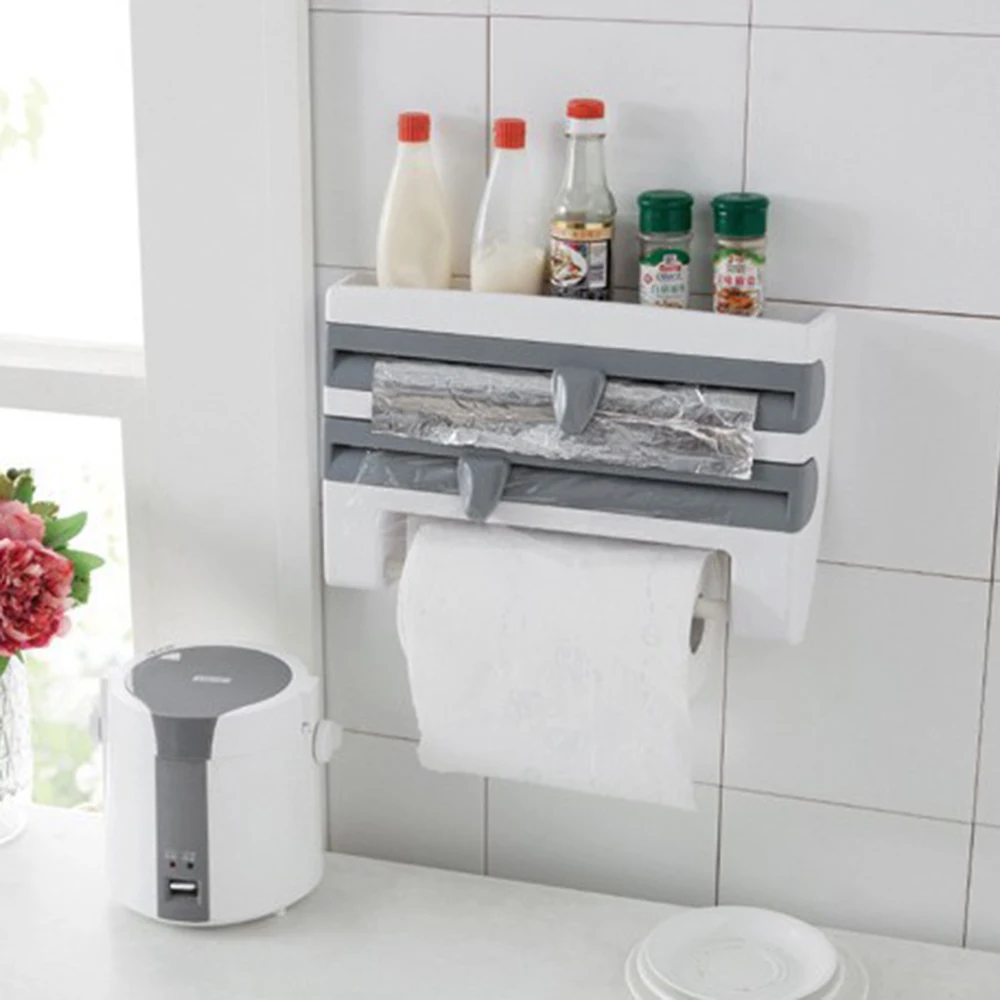 Кухонный пластиковый стеллаж для хранения обертывания с резаком из алюминиевой фольги, бумажные стойки для барбекю, вешалка для полотенец, вешалки для полотенец, товары для дома, кухни 25