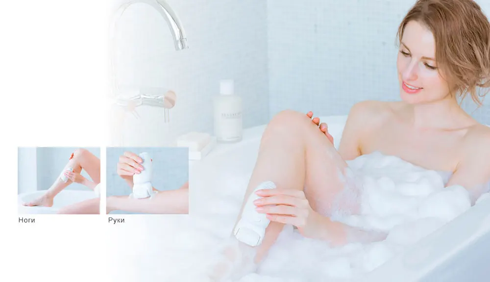 Чтобы сделать пену, просто налейте гель для душа на головку эпилятора. Мелкая пена собирается вокруг каждого нежелательного волоска, так что вы можете деликатно удалять волоски от самого корня.