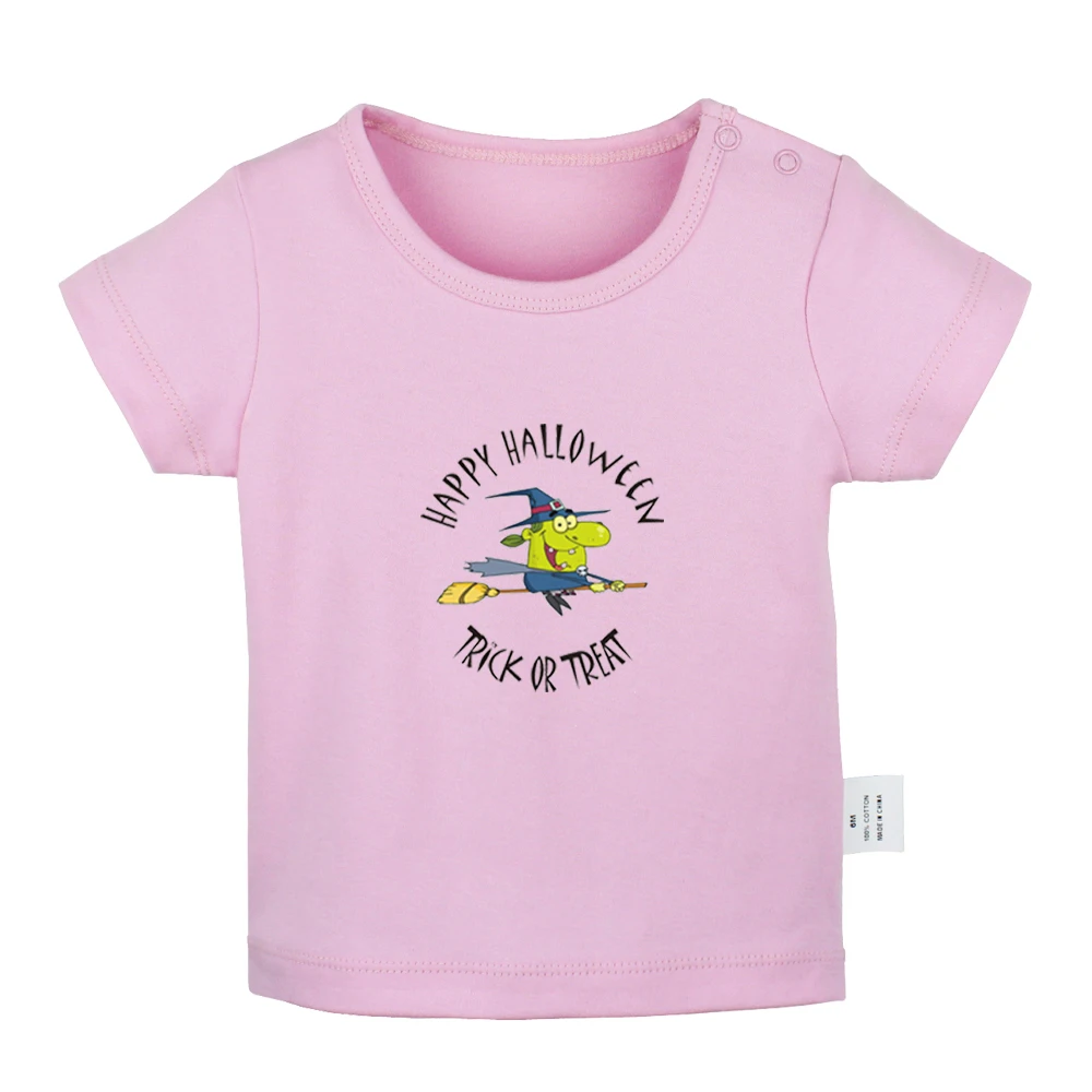 С героями мультфильмов, с изображением летающей ведьмы на Хэллоуин с надписью Trick Or Treat с капюшоном в виде шляпы ведьмы для новорожденных, для маленьких мальчиков и девочек футболки для детей ясельного возраста с принтом Графические футболки с короткими рукавами