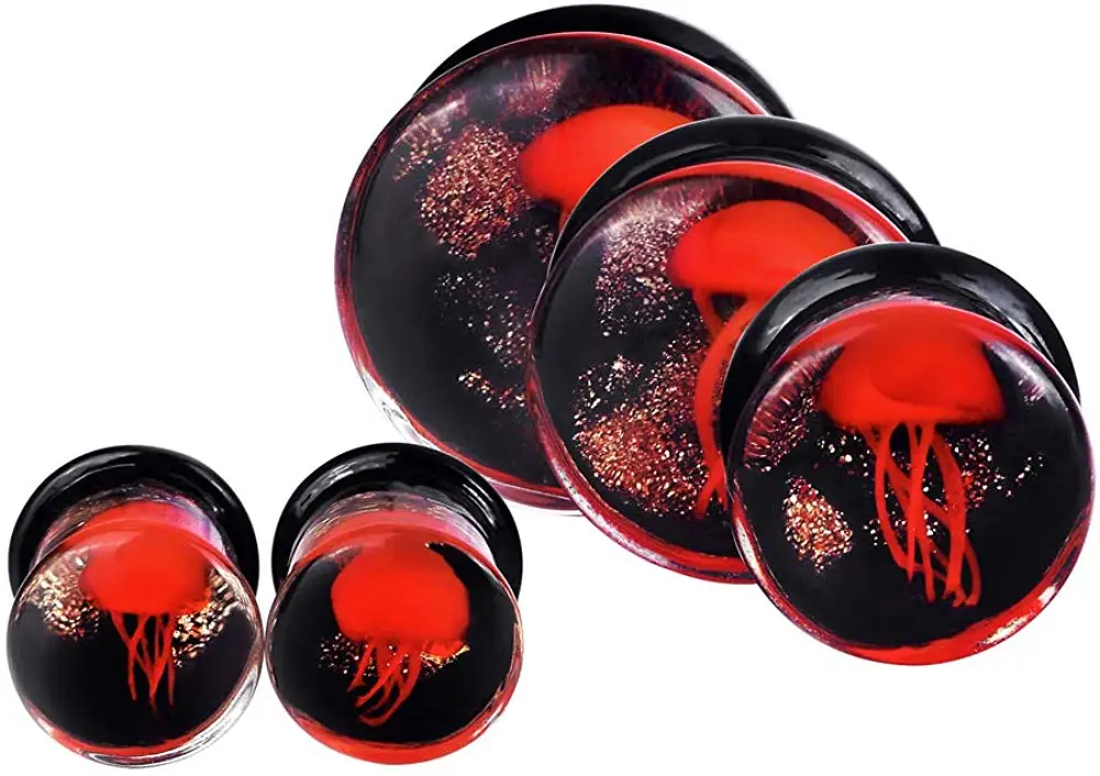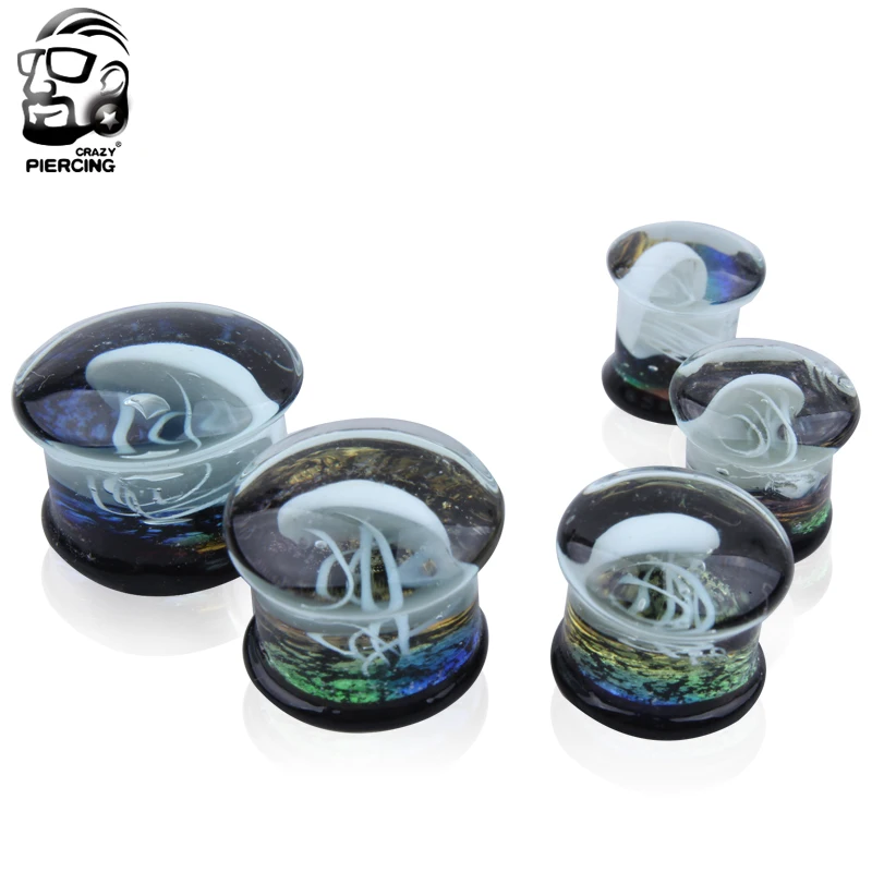Украшения для пирсинга тела из акватического природного камня - насадки на уши с двойным вырезом в виде конкавного тоннеля для растяжения.