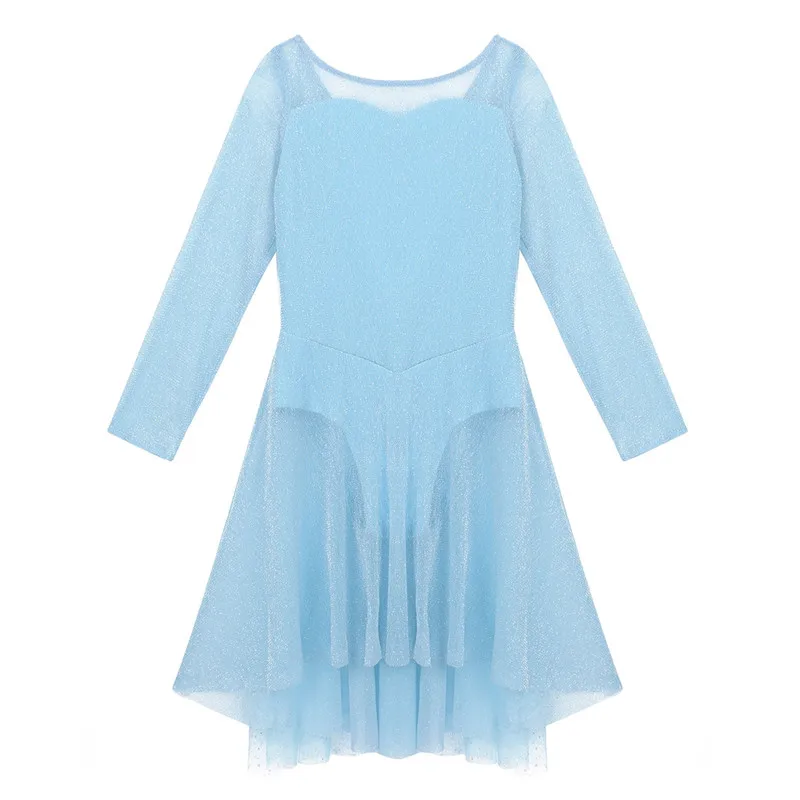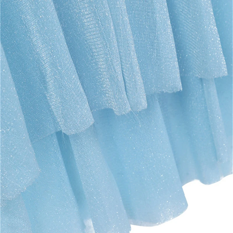 Сзади прикреплен сетчатый плащ с принтом в виде блестящей снежинки. Красивая Одежда для танцев для вашей девочки.