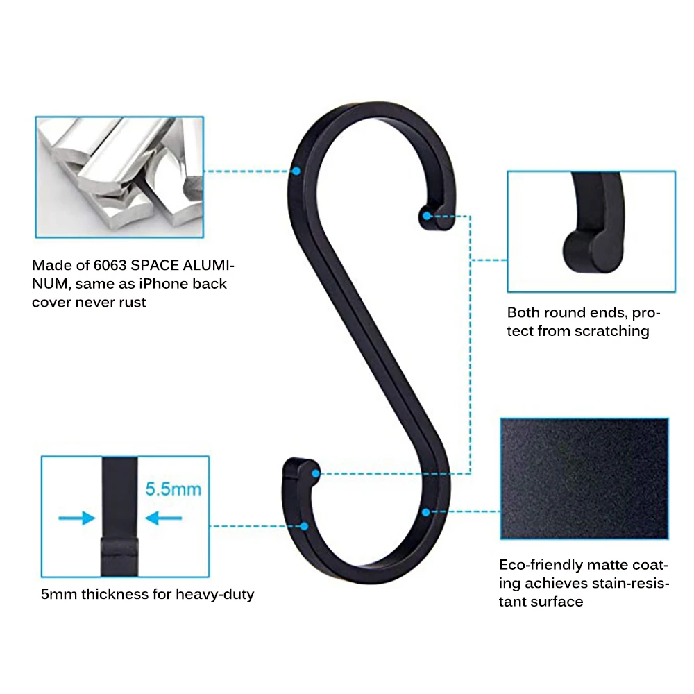 Эти крючки в форме S имеют простой и дружелюбный дизайн, не нужно сверлить на вашем красивом доме и стене, просто Повесьте их на стеллажи,И повесьте все, что захотите.