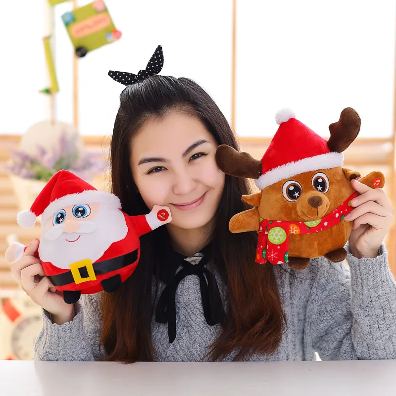 Светодиодный светильник 22 см, пение Рождественской песни, красочные светящиеся плюшевые игрушки Санта Клауса, милые подарки для детей