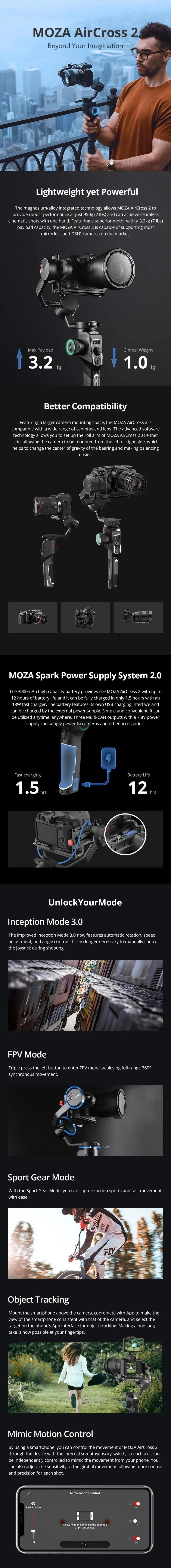 Moza AirCross 2 карданный 3-осевой ручной Камера стабилизатор 3,2 кг Полезная нагрузка Для беззеркальных Камера стабилизатор для цифровой камеры