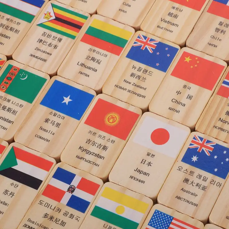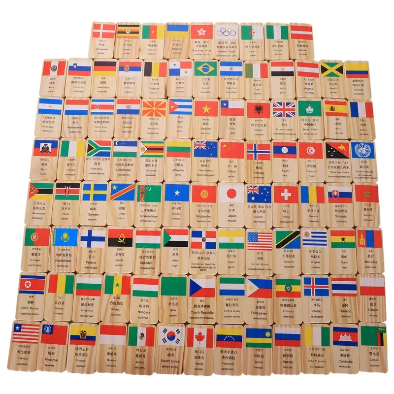 MWZ 100 шт. Новый многоязычный Национальный флаг деревянное домино игрушки понимание мира домино раннее образование Когнитивная игрушка