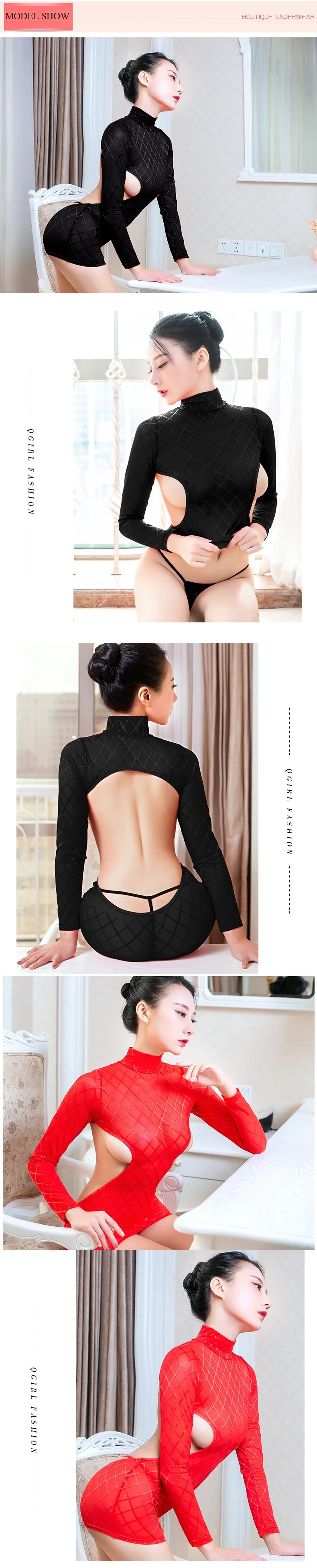 Сексуальное Сетчатое мини-платье с прозрачным высоким воротником и открытой спиной, облегающее милое платье-карандаш, Эротическое платье с Т-образным вырезом на бедрах