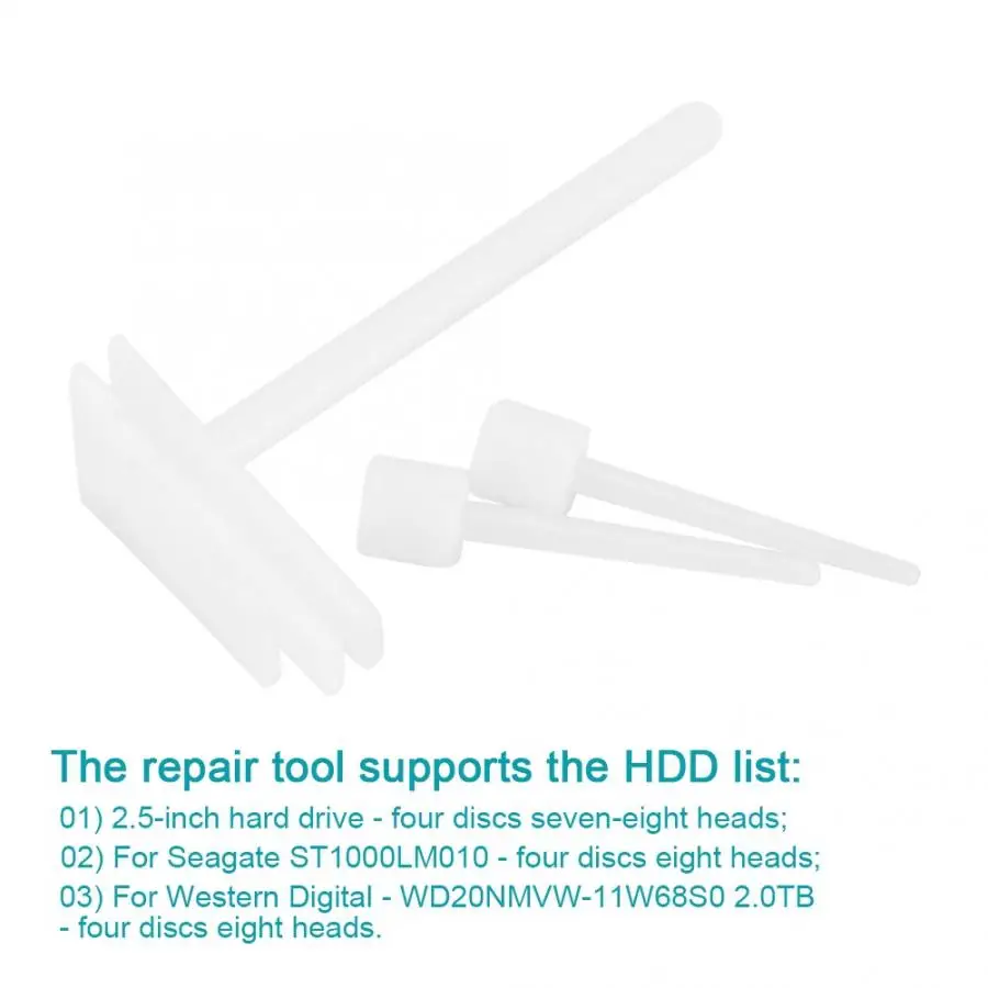 Этот инструмент очень практичный и практичный, чем инструменты, перечисленные ранее. Принимая во внимание тип компьютера, тип жесткого диска, количество магнитных головок, площадь бертинга (внутренняя посадка) и другие факторы, уникальное фиксированное отверстие, штырь, розетка и другой индивидуальный дизайн не могут полностью исправить, но также помогают безопасно и легко управлять. Также расширен доступ к дисковой зоне или раме для парковки, чтобы максимизировать «» для безопасной работы и ударопрочности. Он имеет хорошо управляемую синхронизацию и последовательность физического разделения. Инструмент для ремонта поддерживает список HDD: 01) для -- MHT2080AT PL 80G-два диска и четыре головки; 02) для -- MK4021GAS 40G-два диска и три магнитных головки; 03) для-5400.6ST9500325AS 500G-два диска и четыре головки; 04) For - 5400.6ST9320325AS 320G-два диска и четыре головки; 05) For - 4200.2ST9808210A 80G-два диска и четыре головки; 06) For-DBCA-206480 6,49G-два диска и четыре головки. Эта расческа подходит для внешнего 2,5 дюйма двухдисковый жестких дисков.