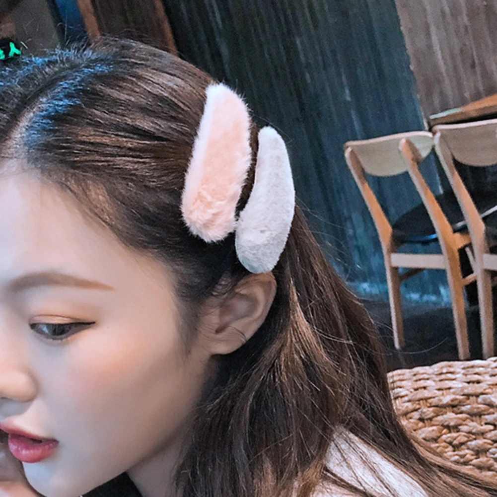 Женская зимняя заколка из искусственного меха в форме капли воды, заколка для волос с челкой, одноцветная заколка для волос