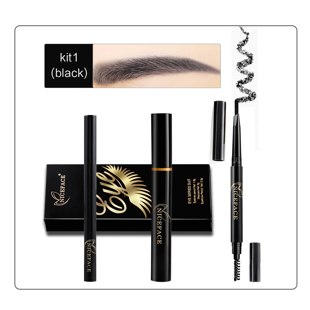 Защита от пота, водонепроницаемость, длинная матовая, гладкая текстура, деликатное прилегание к коже.Упаковочный лист: 1 * карандаш для глаз 1 * тушь для ресниц 1 * карандаш для бровей материал: крем