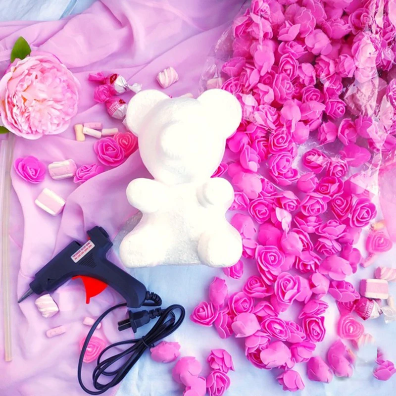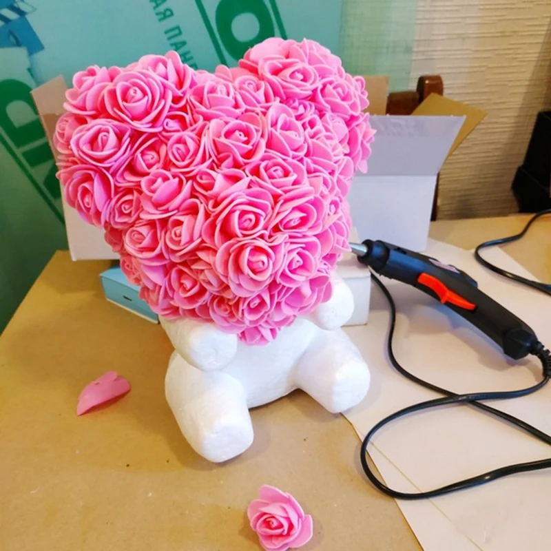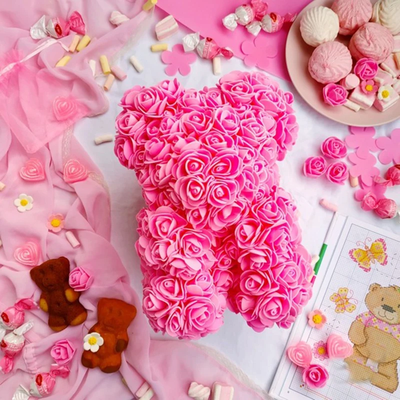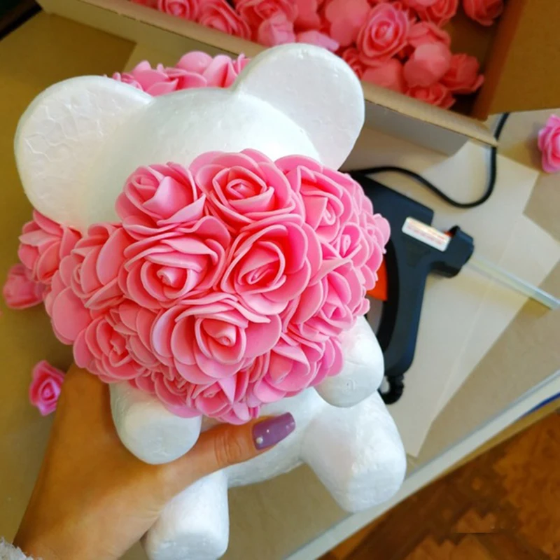 200 piezas PE искусственная Роза flor cabeza Rosa oso Rosa suerte perro molde DIY Fiesta Dia de San Valentina regalo Decoración