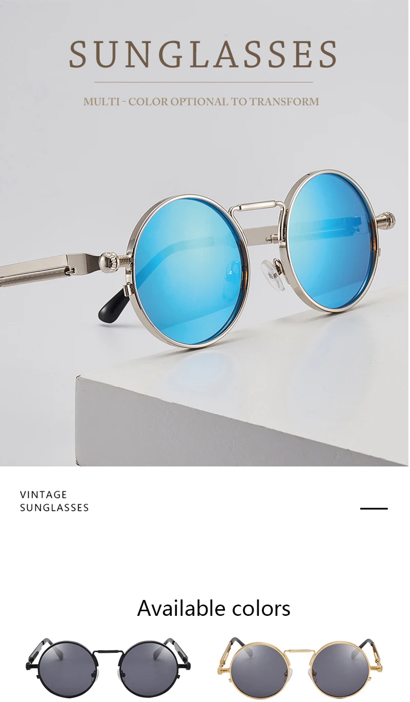 AIMISUV классические готические солнцезащитные очки в стиле стимпанк, мужские брендовые дизайнерские винтажные Круглые Солнцезащитные очки с металлической оправой, высокое качество, UV400