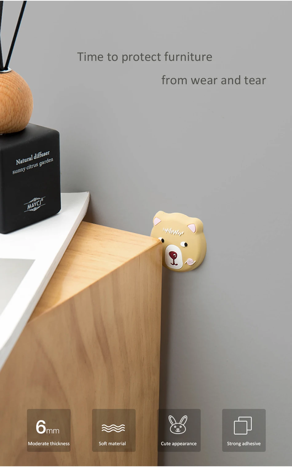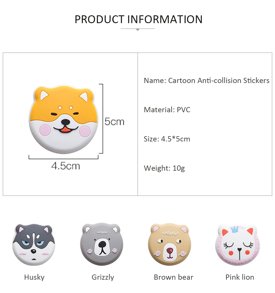 -Чтобы защитить вашу дверь от царапин, наклеив одну из них за ручку двери или шкаф. Особенности: 1. Прочный, не боится штамповки. 2. Хорошая прочность, отсутствие деформации после длительного использования, отсутствие выцветания. 3. Задняя сторона наклейки против столкновений поставляется с сильным клеем, сильным клеем, и это не легко упасть на стену. 4. Подходит для различных стен, таких как побелка, дерево, керамическая плитка и т. д.
