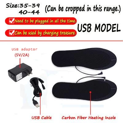 Технические характеристики: Материал: эластичные волокна EVA Нагревательный Материал: инфракрасное углеродное волокно Цвет: черный Напряжение: 5 Вт/2 А Толщина стельки: 4 мм Тип: передняя часть стопы, полная стопа Размер: 35-39;40-44 (можно разрезать) Температура: 40-50 (в зависимости от окружающей среды) Особенности: ♦Подходит как для мужчин, так и для женщин. ♦Деликатный пошив обеспечивает длительный срок службы. ♦Хорошие аксессуары для сохранения тепла зимой. ♦Вы можете выбрать подходящий размер. ♦Твердый черный внешний вид, грязепроницаемый и пылезащитный. ♦Изготовлен из высококачественного углеродного волокна для дезинфекции и дезодорирования. ♦Изысканная обработка обеспечивает мягкость и удобство при прикосновении. Посылка включает в себя: 2 x обувь Pad USB кабель (1 шт.); 1 х USB адаптер Примечания: 1. После получения стельки, не Режьте по желанию, пожалуйста, в соответствии с вашим размером, чтобы вырезать его в соответствии с вашим размером. 2. При ручном измерении допускается погрешность в 1-2 мм, спасибо.