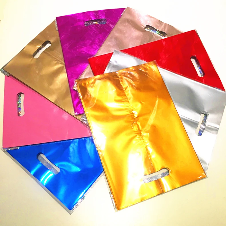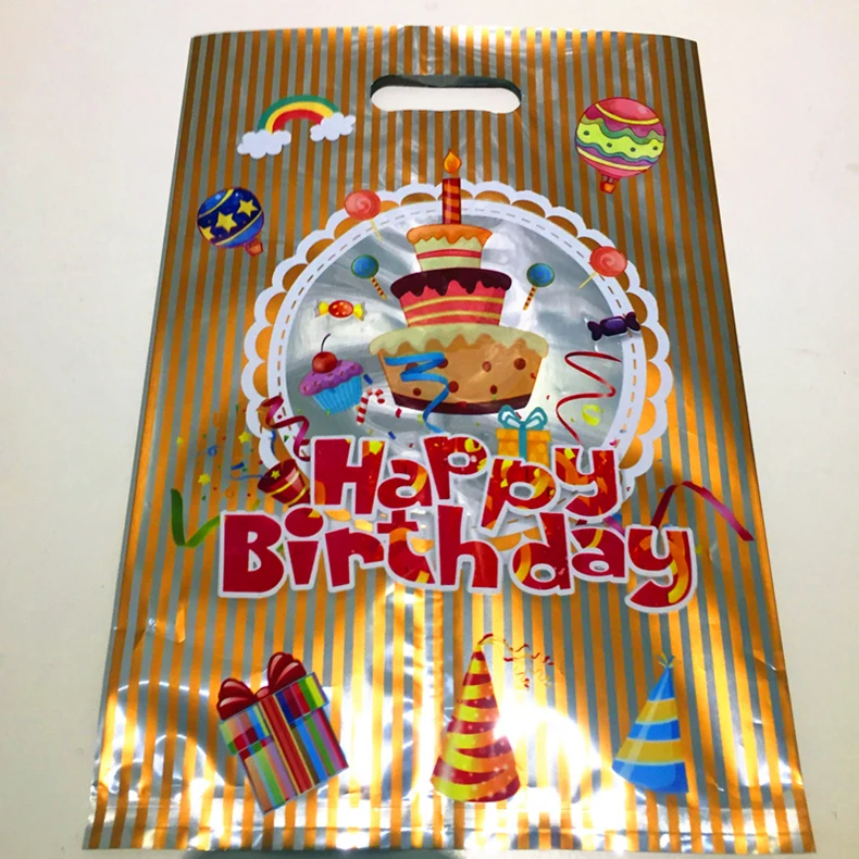 Алюминиевый пластиковый пакет с ручками для подарков на день рождения, Рождество, вечерние подарочные пакеты, утолщенный бутик, упаковка для покупок, 10 шт.