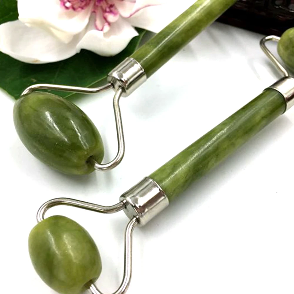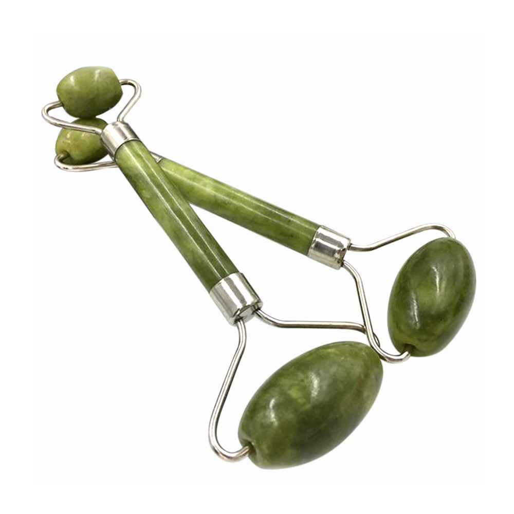 Массажный ролик для лица с двойными головками, Нефритовый камень, подтяжка лица, расслабление кожи, расслабление кожи, красота, уход за здоровьем