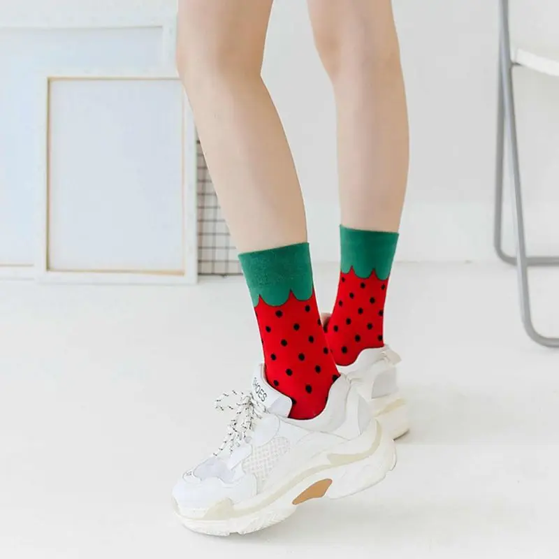 Стиль Харадзюку, противоскользящая эластичная манжета, длинные носки, новинка, забавный рисунок с рисунками фруктов/продуктов, 11 стилей на выбор.