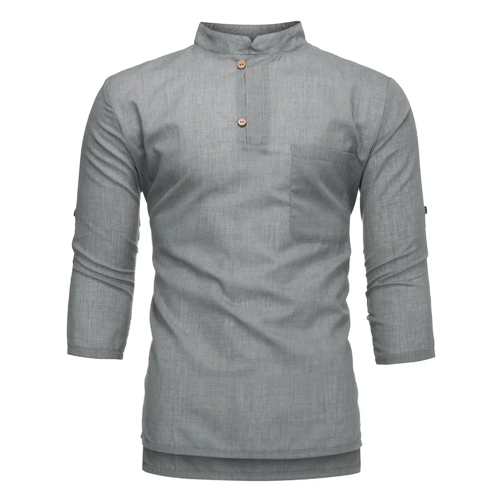 Мужская летняя новая стильная модная блузка из чистого хлопка и пеньковой ткани